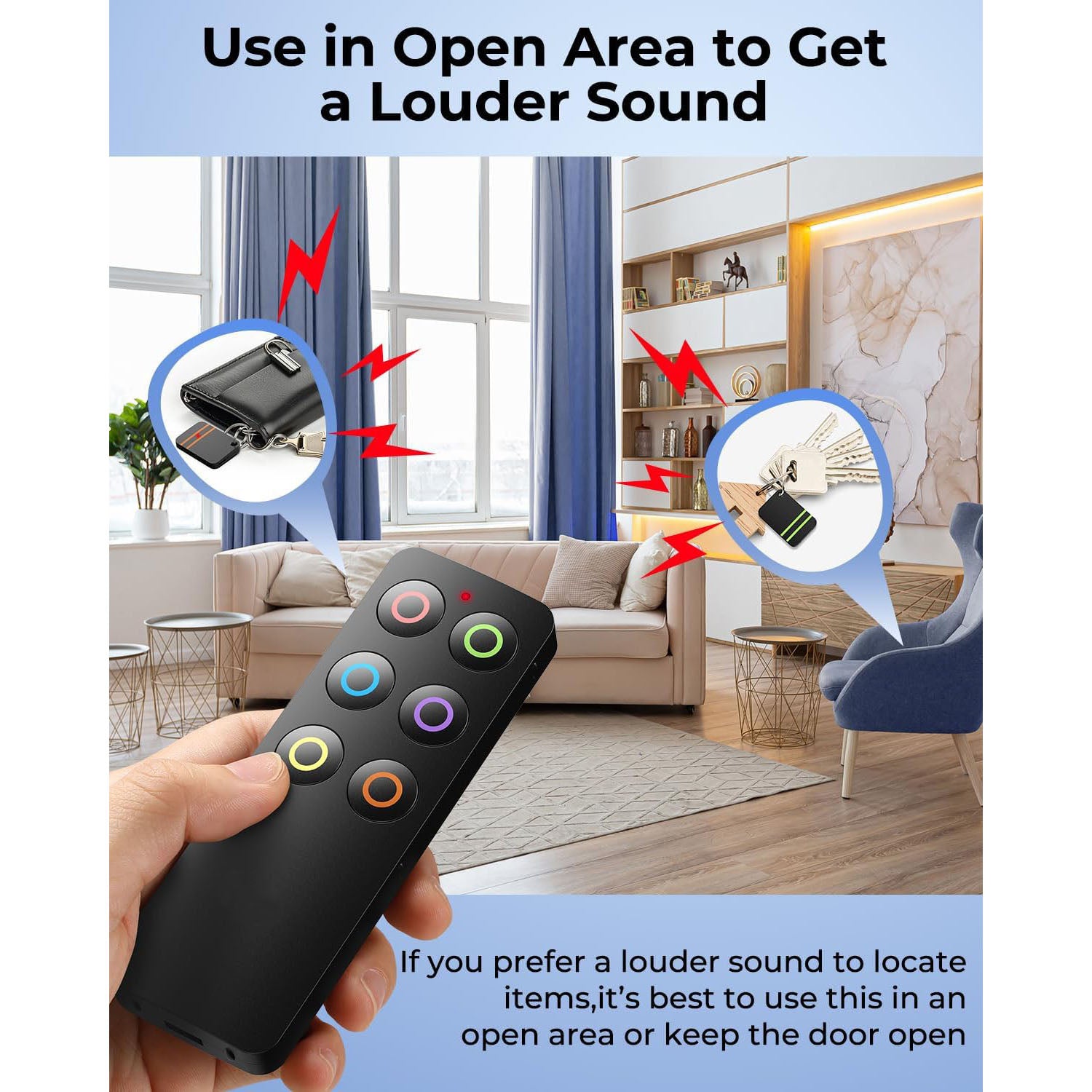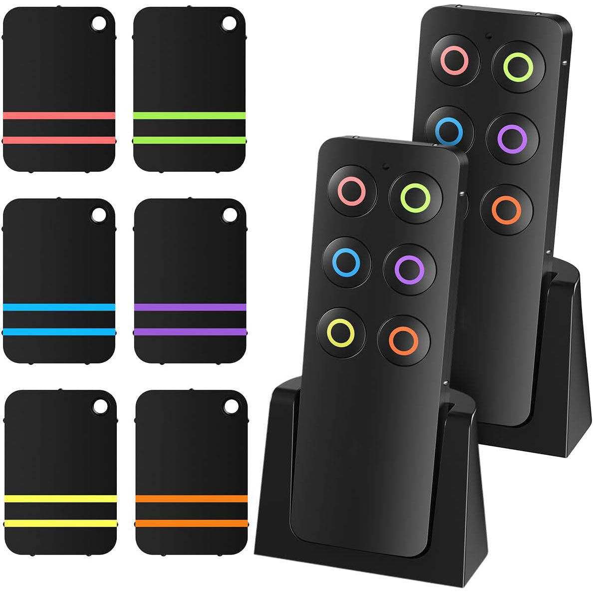 Each of the 6 receivers comes in different colors, and the included remote can pair with all of them. This makes it easy to organize and locate your items based on the color-coded buttons.