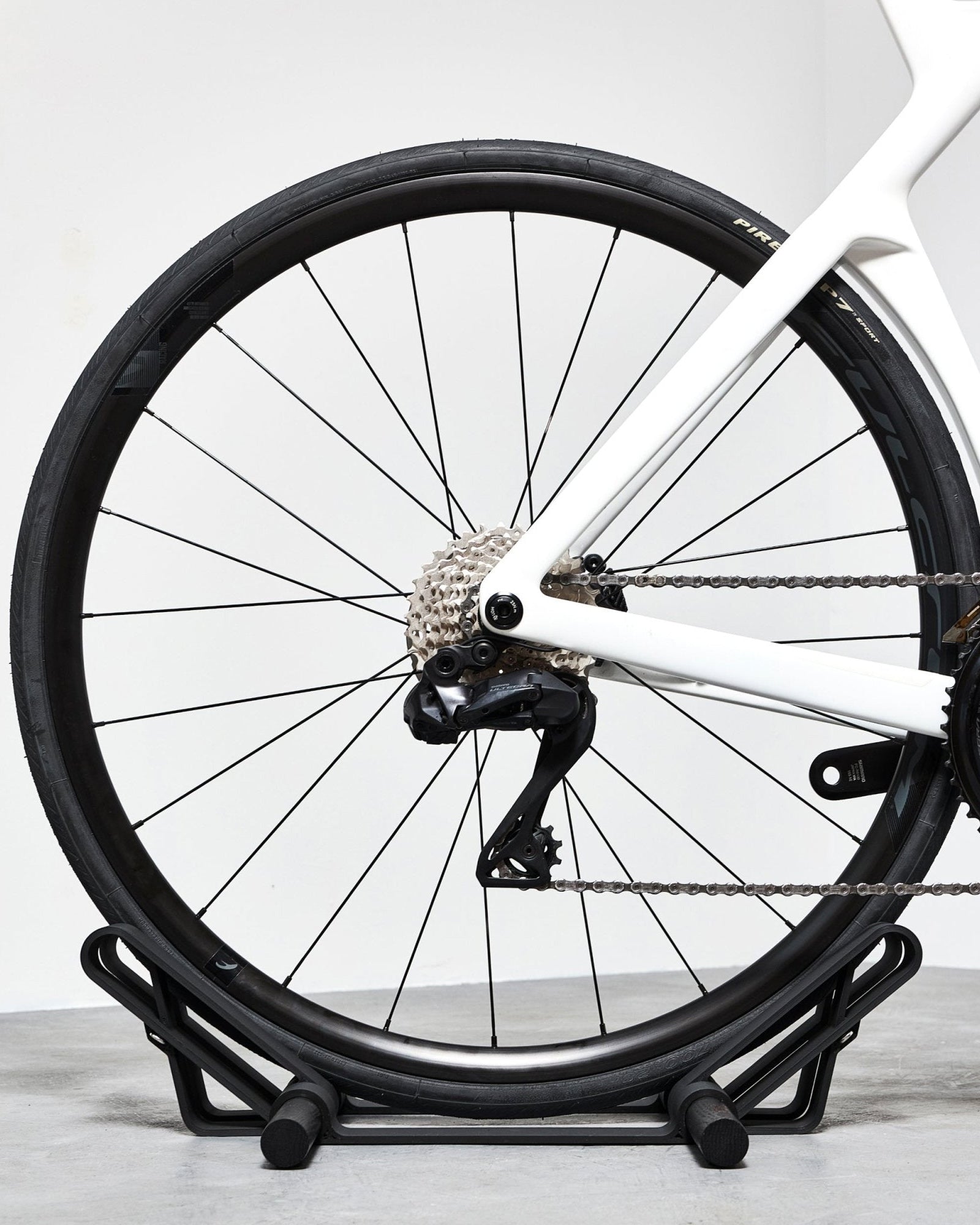 Holds your bike securely upright on any floor surface. Minimalist design blends naturally into your space – turns your bicycle into a room-worthy display piece.