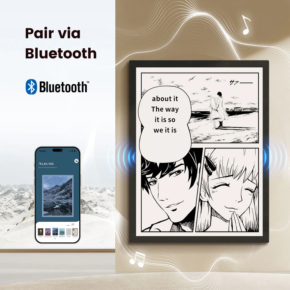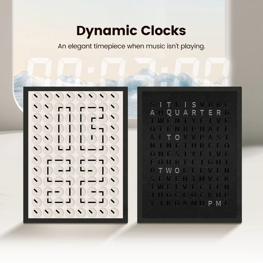 Designed like a real picture frame, it doubles as a digital gallery—display artwork, photos, or memories even when music isn’t playing.